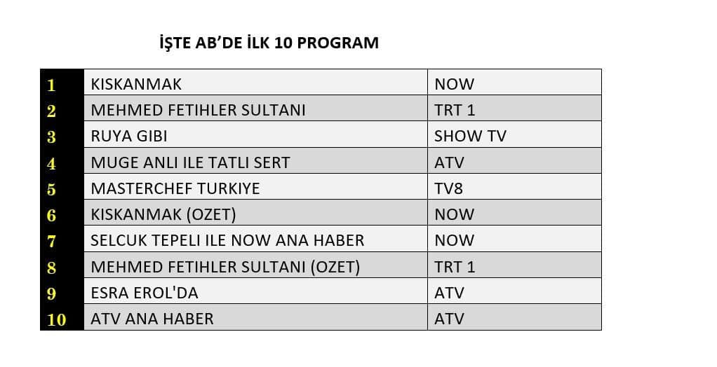 🔍 Группа ABC1 также отдала пальму первенства «Kıskanmak». Однако «Mehmed: Fetihler Sultanı» здесь лишь на второй строчке, а бронза — у «Müge Anlı İle Tatlı Sert». Что это? Возвращение популярности формату ток-шоу в этой категории или временный всплеск? Покажет время. Но факт остаётся фактом: борьба за внимание зрителя идёт нешуточная.