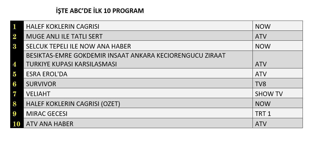 🏆 И здесь — снова он! Сериал «Преемник» возглавил и эту категорию, подтвердив свой массовый успех. Вторую строчку удерживает «Müge Anlı İle Tatlı Sert», а третью — информационная программа «Selçuk Tepeli ile Now Ana Haber». Впечатляющий результат, не правда ли?
