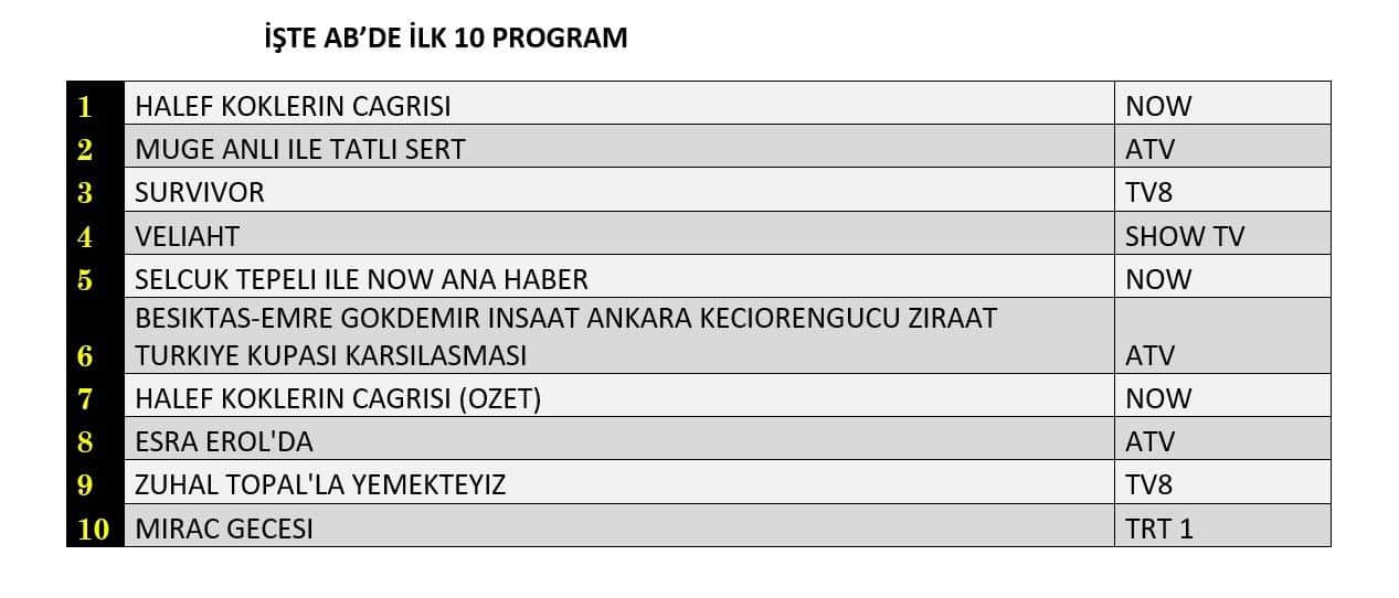 🎯 В самой важной для рекламодателей группе AB ситуация повторилась! «Преемник: зов предков» снова на высоте. Вслед за ним расположились «Müge Anlı İle Tatlı Sert» и реалити-шоу «Survivor». Похоже, история о Джихане и его наследии затронула сердца самой требовательной аудитории.